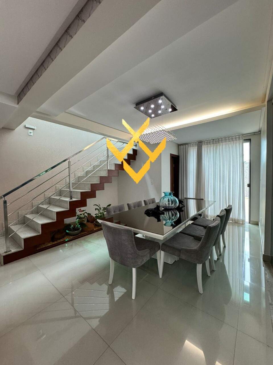 Casa residencial no bairro São Roque, Divinópolis - MG. 1° pavimento: sala ampla para 3 ambientes (estar, TV, jantar), lavabo, cozinha com bancadas em granito e móveis planejados, fogão cooktop, amplo espaço gourmet com churrasqueira, bancada , área descoberta, banheiro social, área de serviço, jardim, 4 vagas de garagem. 2° pavimento: sala de TV com sacada, 4 quartos espaçosos, incluindo uma suíte master com closet e escritório, dois dos quartos possuem sacada, banheiro social.
