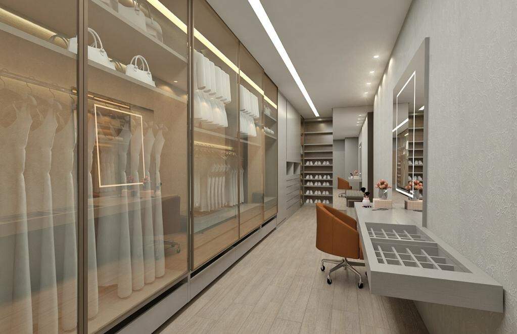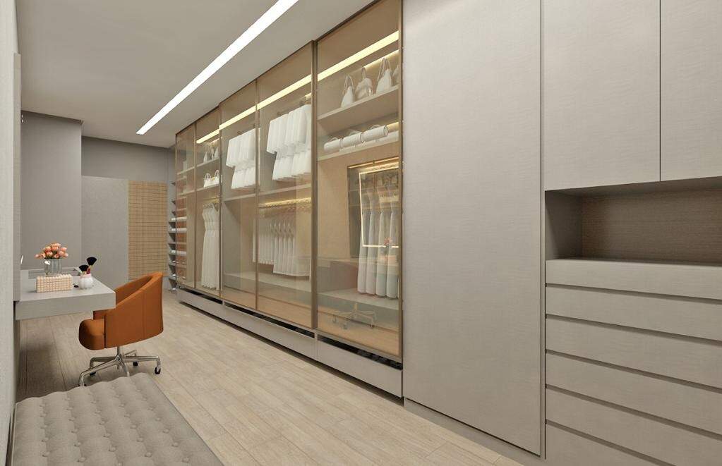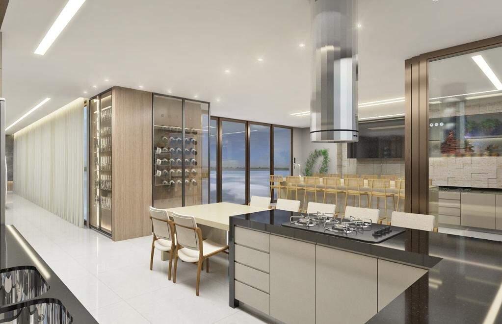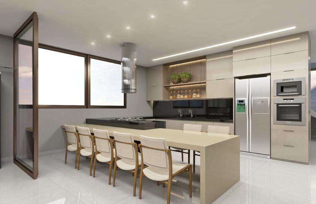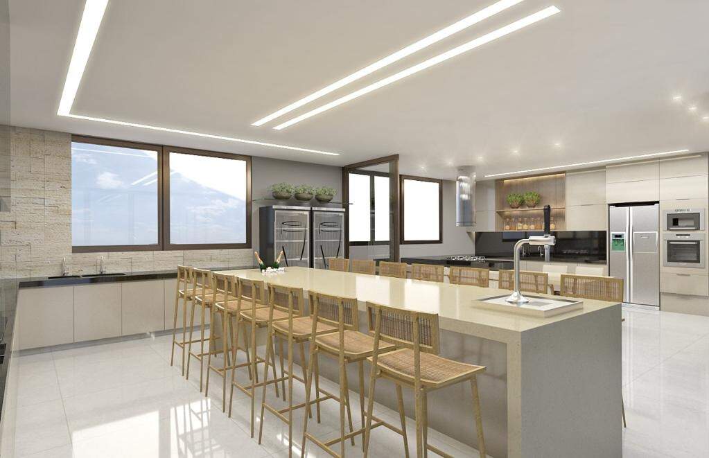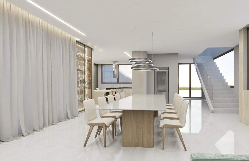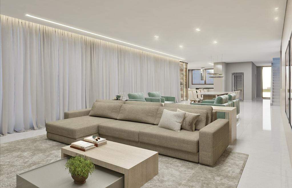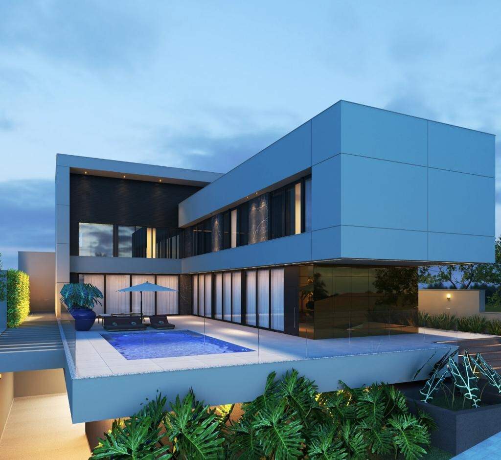 - Área Total: 810 m² Subsolo: - Garagem 4 (Quatro) Vagas Independentes - Lavanderia - Despensa Depósito - DCE Completo - Bar - Fosso de Elevador Área Social ? Conceito Integrado (Primeiro Pavimento) - Home - Sala de Estar - Sala de Jantar - Lavabo - Cozinha Gourmet Integrada - Piscina com aquecimento solar - Banho Piscina Área Íntima: (Segundo Pavimento) - 04 Suítes: - 01 Suíte Master ? 02 Ambientes ? Closet ? Banho com Hidromassagem - 03 Suítes com Closet - Casa equipada com portas e janelas em esquadrias em alumínio bronze - Janelas de quarto com persianas integradas controle remoto Água quente e fria: - Chuveiros - Banheiros - Pias Itens Opcionais: - Elevador - Energia Fotovoltaica - Planejados completo